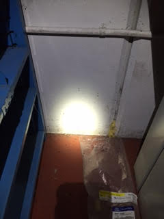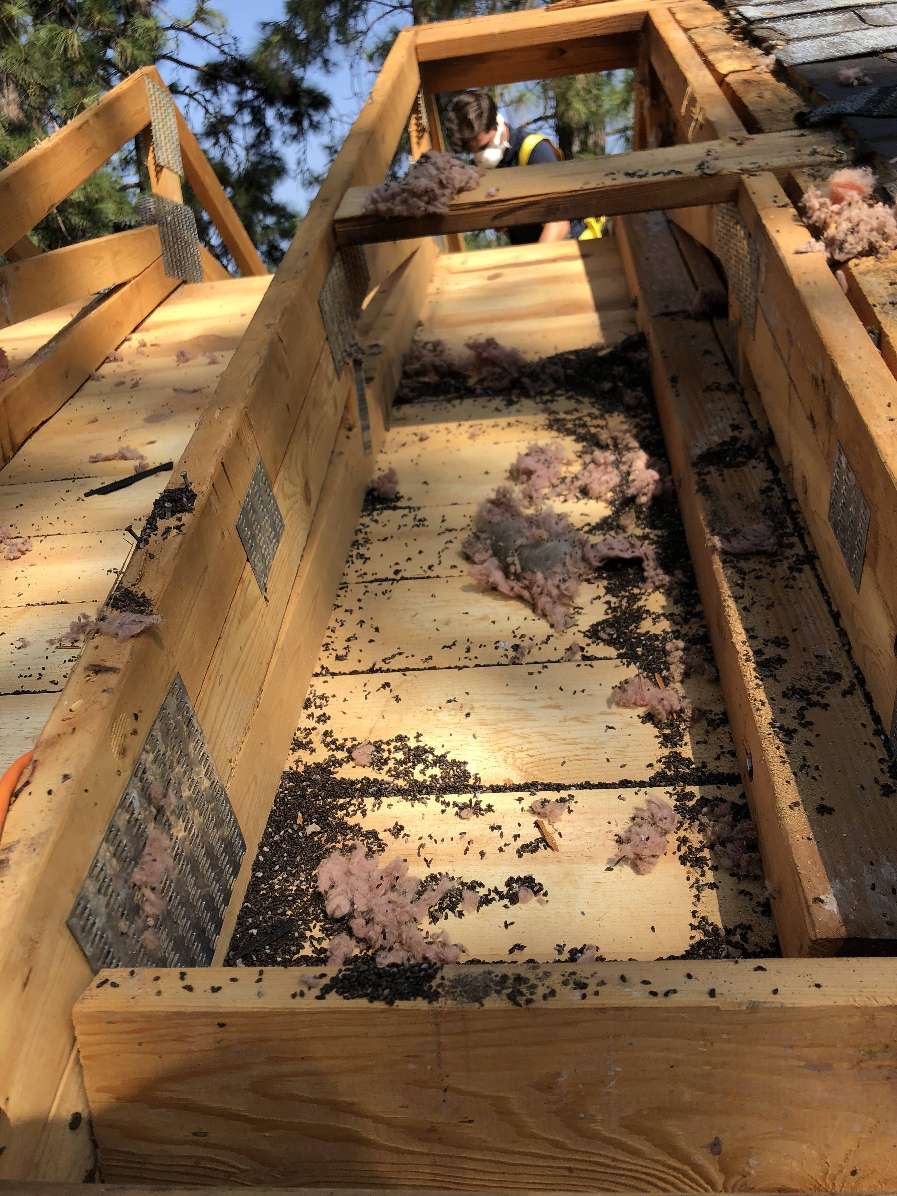 Bat Hibernating Bat on ground. Bat droppings over porch. Very heavy bat infestation. Bat guano falling from nest above. Bat guano in attic. Bat guano falling on patio door threshold. Sick Bat. Bat afraid of humans. Bats hanging out. Bat guano falling from ceiling. Very large infestation in attic. Large Bat Colony Bat caught in attic. Guano in inaccessible attic space. Major infestation with guano. Installing 1-Way Exit. Possible bat entrance. Largest Guano Pile. Gavin removing guano in attic space.